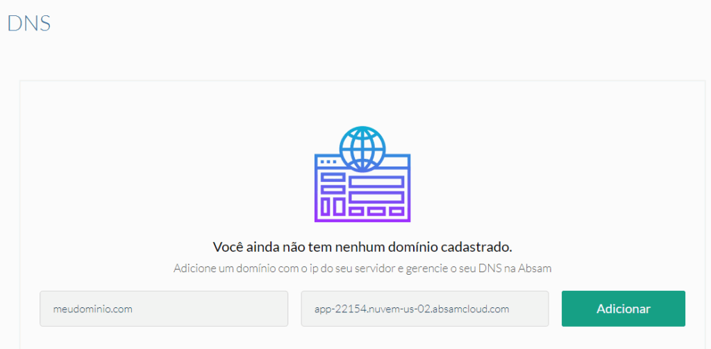 Apontar um domínio personalizado para seu Cloud App ou Cloud Nat é uma tarefa simples no painel da Absam. Com poucos passos é possível apontar o seu domínio.