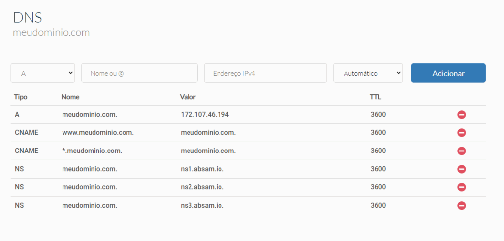 Esses são nossos nameservers caso você use o servidor DNS da Absam para seu domínio: